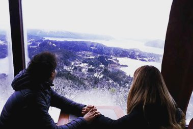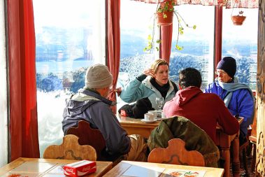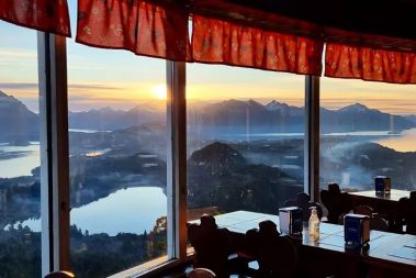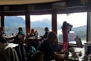 La Confitería en la cumbre, a 1.050 metros sobre el nivel del mar, permite apreciar una de las más bellas y fascinantes vis tas de la región: los lagos Nahuel Huapi y Perito Moreno, laguna El Trébol, penínsulas San Pedro y Liao Llao, Isla Victoria, los cerros Otto, López, Goye, Catedral, Capilla y el maravilloso entorno cor dillerano de la ciudad de San Carlos de Bariloche.